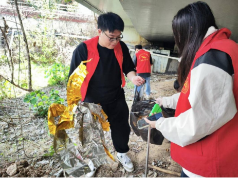 来到桥头公园,同学们手持垃圾袋、扫帚等工具,认真清理公园道路和角落的杂物,捡拾散落在草丛的瓶子、纸屑等,用自己的实际行动为公园增添一份清新,一抹明亮,为文明城区创建贡献力量。