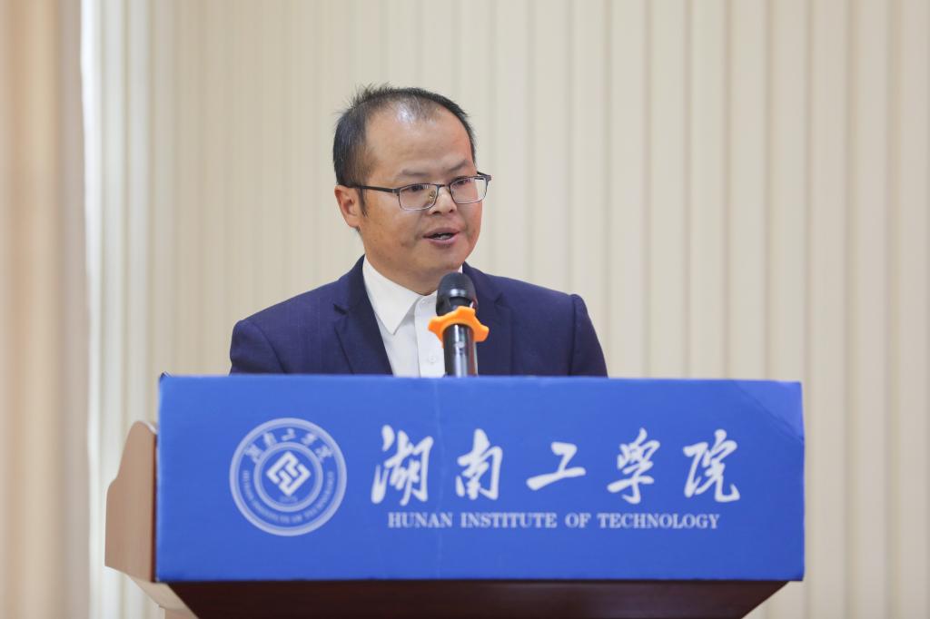 校友代表、中建五局园林公司副总经理、02级工民建专业周晓峰代表校友发言,他回顾了在母校求学期间的收获与感悟,表达了对母校及老师的感恩之情,展望了未来的发展,表示将进一步加强与校友之间、与母校之间的联系,共同为母校添光加彩。