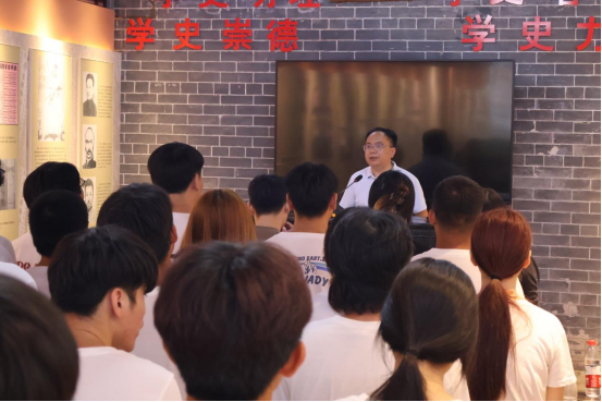 在湘南学联纪念馆陈列展厅,师生跟随讲解员步伐,聆听了湘南学联的历史故事,深入了解湘南学联的创办历史、革命意义以及夏明翰、毛泽建等革命英雄宁死不屈的英勇事迹,追忆激情澎湃的革命岁月。