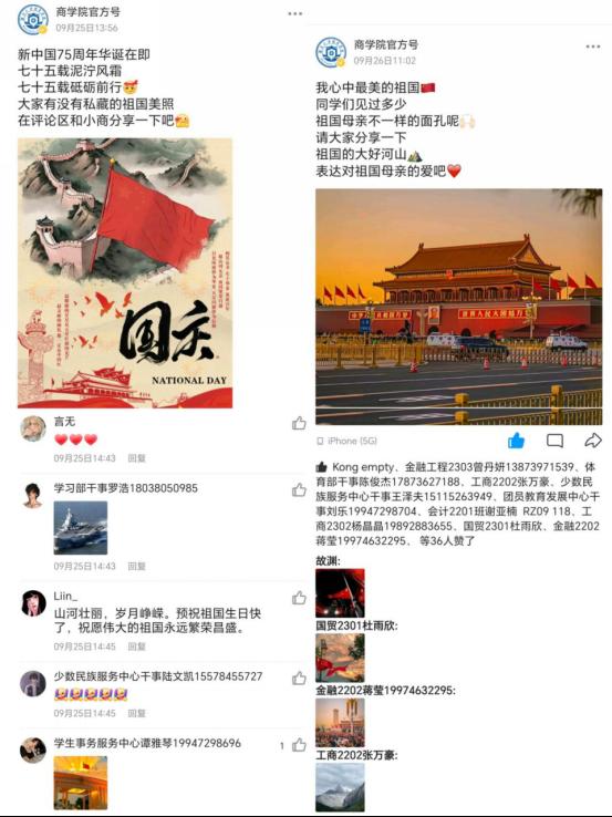 祖国的美好是巍峨山川间流淌的千年文化,是浩瀚星河中闪耀的民族之魂。我院坚持以学生为主体,在“两微一端”发起话题“我心中最美的祖国”,邀请大家用手机分享的祖国大好河山,用“我”与祖国共奋进的瞬间表达对祖国母亲的爱,送上最真切的祝福,让世界看到真实、美丽的中国。