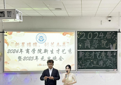 为丰富学生校园文化生活,展现新生青春风采。12月17日晚,商学院于经管楼601举办2024年新生才艺秀暨元旦晚会。商学院党委副书记赵晓军、学工办副主任白力可艳、全体辅导员老师及学生代表参加本次活动。本次晚会通过线上线下同步直播的方式,吸引在线观看人数达数千人,收获1.3万的点赞量。