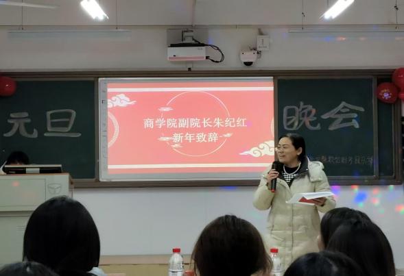 在辞旧迎新之际,为活跃校园文化氛围,增进俱乐部成员间的情谊,数智财务俱乐部于2024年12月27日成功举办了元旦晚会。本次晚会通过精彩纷呈的节目表演、趣味盎然的游戏环节和激动人心的颁奖环节,为全体会员带来了一场欢乐温馨的聚会,共同迎接新的一年。商学院副院长朱纪红和会计教研室副主任杨英莅临指导。