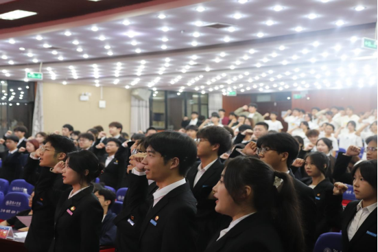 第十七届团委学生副书记、学生会主席团成员带领新一届团委、学生会全体成员进行庄严宣誓。全体合唱《光荣啊,中国共青团》团歌。