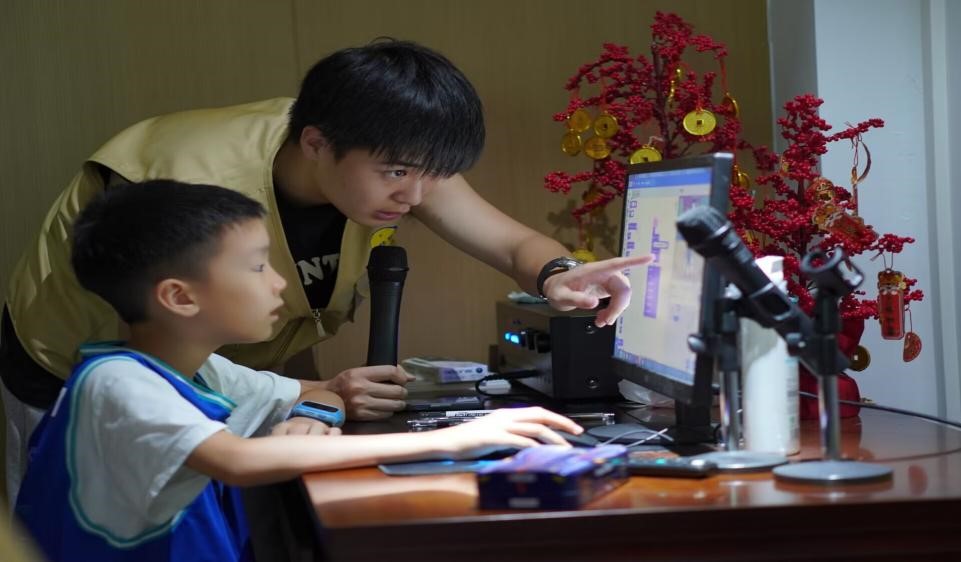 孩子们初识编程时,一个个小脑袋挤在一起,专注地盯着屏幕,惊叹于每一次代码运行带来的神奇化学反应;在实践阶段,孩子们的手指在键盘上跳跃,每一次成功的操作都能引发一阵阵欢呼声。编程或许是个新玩意,但却让这些懵懂的娃娃们看到这个世界的不一样。