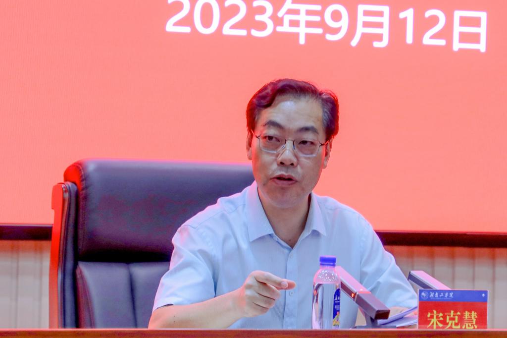 宋克慧要求学校各级党组织和广大党员干部一要坚持学用结合,持续加强理论学习;二要坚持培根铸魂,持续加强政治建设;三要坚持实干担当,持续推进高质量发展;四要坚持动真碰硬,持续抓好检视整改;五要坚持纠治“四风”,持续加强作风建设。