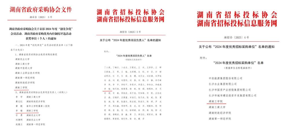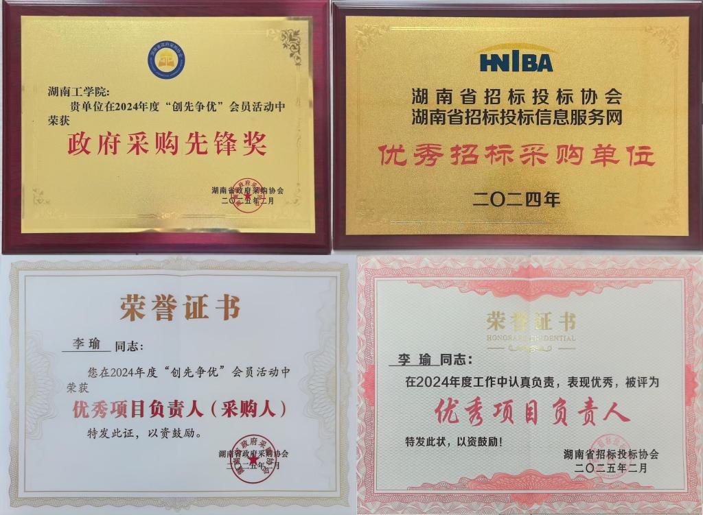 此外,伟德招标招投标管理办公室李瑜同志同时荣获了招标投标协会“2024年度优秀项目负责人”称号和湖南省政府采购协会“2024年度优秀采购人”荣誉。